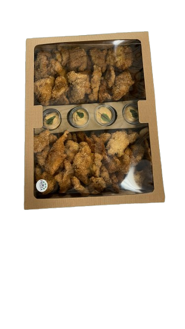 kurczak w sojowej glazurze (w wersji Vege TOFU), czosnek, orzechy, pietruszka, sos orzechowy, pecorino romano Opakowanie na wynos MIĘSNA - KURCZAK -