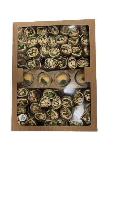 pesto bazyliowe, śmietanka, mozzarella, szynka cotto, ricotta, pieczone pomidorki z czosnkiem. Opakowanie na wynos -
