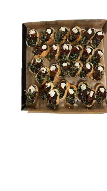 PIECZONY BATAT, ŻURAWINA, SOS NA BAZIE KOZIEGO SERA, DOMOWA CEBULKA PRAŻONA Opakowanie na wynos -